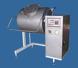Vorrichtung Mischtrommel Mischtrommel ist ein einlagige-zylindrische Behälter, der horizontal an dem Rahmen angebracht wird und mit einem Drehantrieb mit Getriebemotor vorgesehen ist. Behälterenden haben eine konische Form. Laden und Entladen der Mischerkomponenten des fertigen Produkts aus dem Mischer Behälter wird durchgeführt, in der Regel durch den gleichen Knoten - Knoten be- und entladen Komponenten (Luke, Schieber). Um einen sicheren Betrieb der Mischtrommel sicherzustellen, ist auf dem Umfang ein Klapprahmen mit Endschalter montiert. Rotations-Mischer des Behälters, stoppt bei Rahmenanhieb. Die Konstruktion des Mischers ist aus rostfreiem Stahl hergestellt.